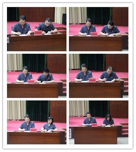 区法院党组书记、院长傅廷文与其他党组成员签订党风廉政建设责任书。